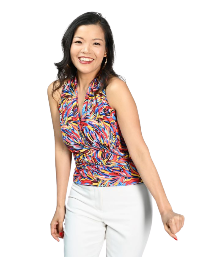 Our Signature Faux Wrap Top is one of our best sellers and a must have for your wardrobe. Its elegant halter neck sleeve-less design lets you wear it as a under-the-jacket-sexy-top as well as a Top on its own.