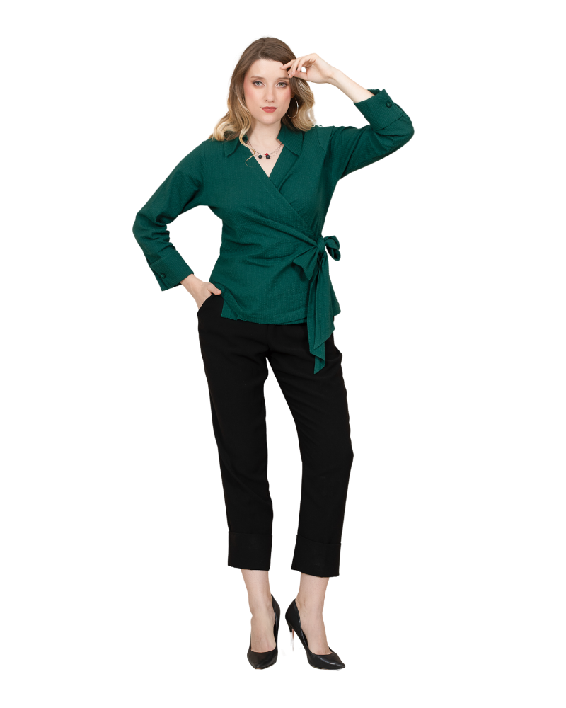 Chic Wrap Design: The elegant wrap design with a side tie adds a touch of sophistication and allows for a customized fit that accentuates your waistline.